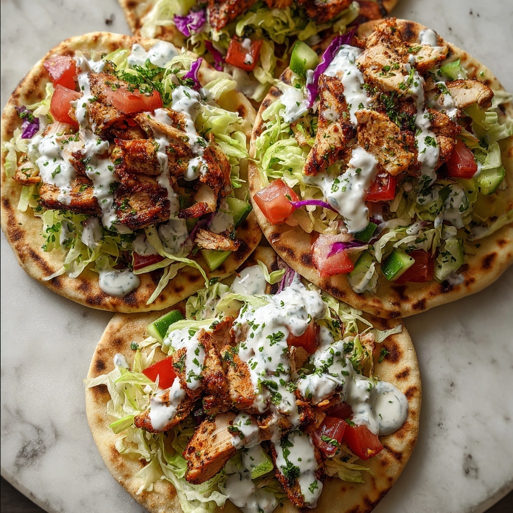 These ingredients come together in a beautiful harmony of simple yet essential flavors. Each component plays a crucial role—from the smoky spices that infuse the chicken to the fresh herbs that brighten the creamy slaw, and finally the whole wheat pitas that bring everything together with warmth and heartiness.