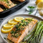 This Sheet-Pan Garlic Butter Salmon & Asparagus recipe offers a quick and delicious way to enjoy a healthy, flavorful meal with minimal cleanup. Salmon fillets are roasted alongside fresh asparagus and coated in a rich, garlicky butter sauce enhanced with lemon, Dijon mustard, and a hint of honey for sweetness. Perfect for a nutritious weeknight dinner that takes just 30 minutes from start to finish.
