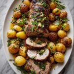 Serve the pork and potatoes on a rustic wooden board for a cozy, family-style vibe. For a dinner party, arrange slices of pork fanned out on a platter with potatoes nestled around, garnished with lemon wedges for an inviting touch.