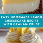 This Simple Homemade Lemon Cheesecake is a creamy and tangy dessert with a buttery graham cracker crust and a bright lemon flavor. Perfectly baked to a smooth texture with a slight jiggle at the center, it’s a refreshing twist on classic cheesecake that’s ideal for any occasion.