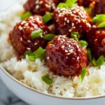- Garnish and serve: Serve meatballs garnished with toasted sesame seeds and additional chopped green onions for a fresh finish.
