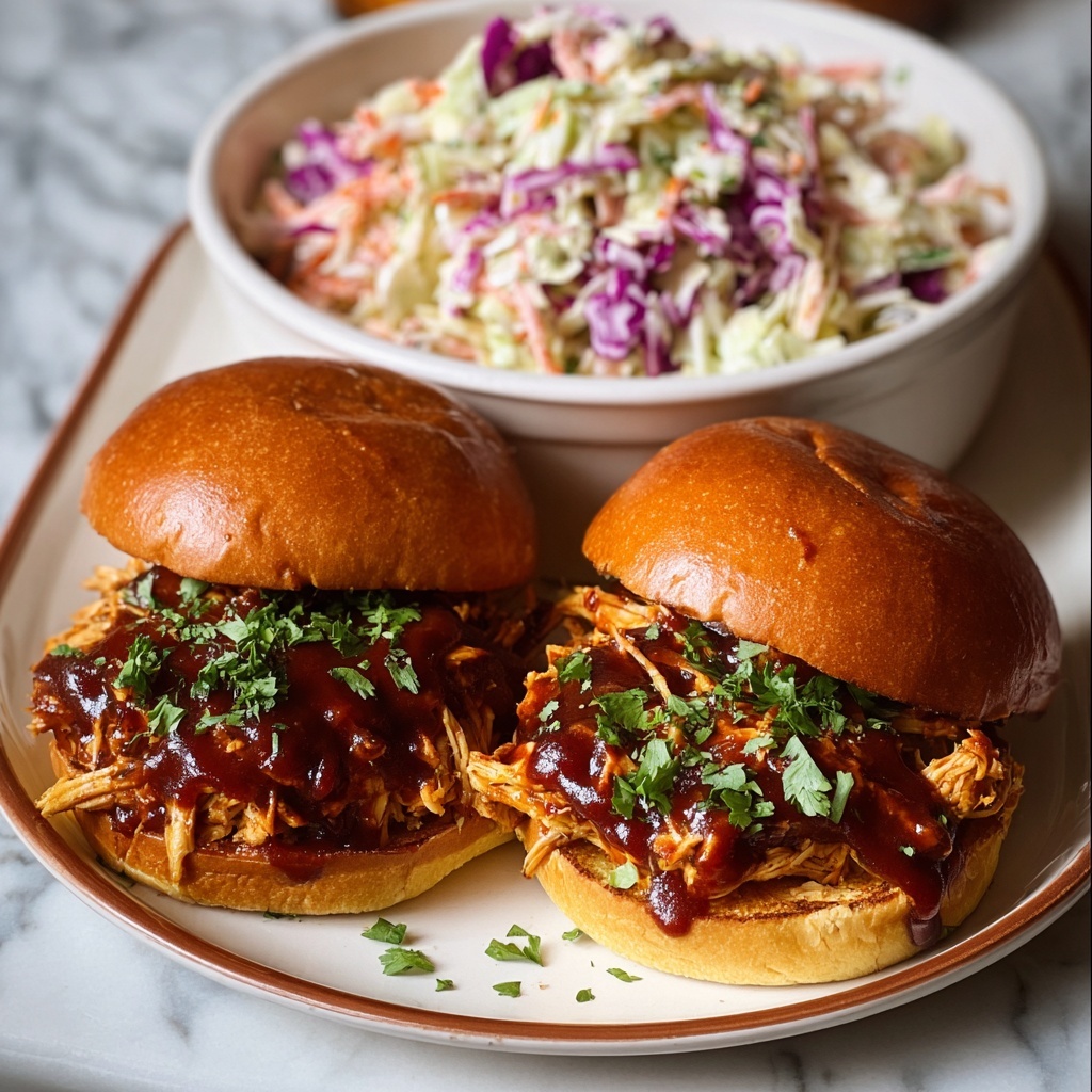 This dish pairs beautifully with classic BBQ sides like baked beans, corn on the cob, or crispy fries. A simple green salad or roasted vegetables can also balance the richness of the pulled chicken for a well-rounded meal.