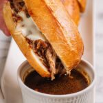 - Assemble and Serve: To assemble the sandwiches, pile the juicy shredded beef onto hoagie rolls. Add caramelized onions or sautéed mushrooms if desired and top with sliced mozzarella or provolone cheese. Serve warm with the reserved dipping juices on the side.