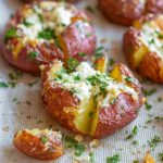 These crispy smashed potatoes are a delicious appetizer or side dish featuring tender boiled potatoes that are smashed, seasoned, baked to golden perfection, and topped with melted parmesan cheese and fresh parsley. Perfectly crispy on the outside and fluffy inside, they make a flavorful and crowd-pleasing snack or accompaniment.