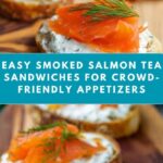These Smoked Salmon Tea Sandwiches are elegant and delicious canapés perfect for any gathering or afternoon tea. Featuring creamy dill-flavored cream cheese atop thinly sliced smoked salmon on toasted baguette rounds, these bites offer a delightful combination of smoky, creamy, and fresh flavors with a crisp texture.