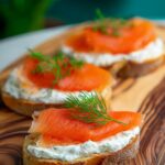 - Assemble the sandwiches: Once toasted, spread a generous layer of the dill cream cheese mixture on each baguette round. Top each with a small piece or fold of smoked salmon, ensuring an even distribution of flavors in every bite.