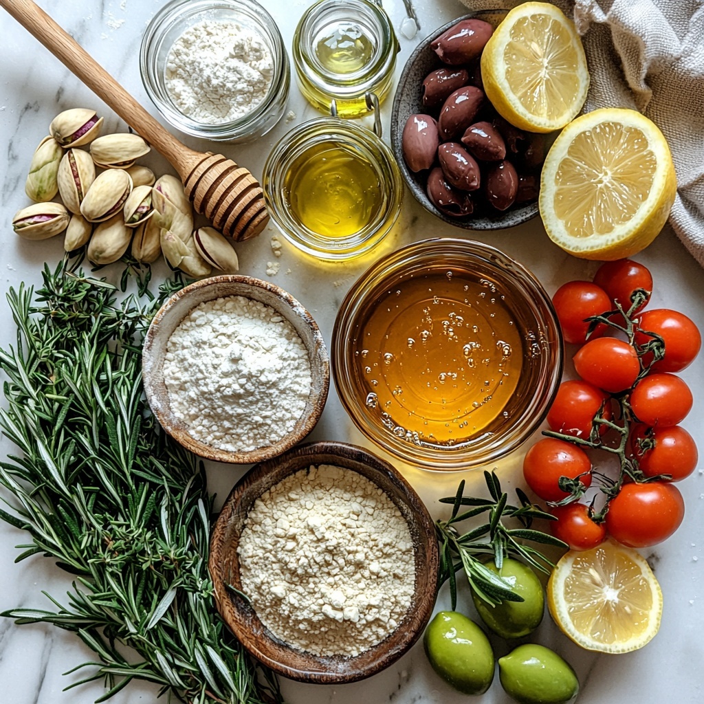 - Sliced tomatoes, fresh rosemary, sliced onions, ground pistachios, sliced lemons, olives: These toppings bring freshness, texture, and vibrant color to your focaccia canvas.