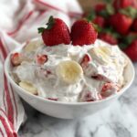 This Strawberry Banana Cheesecake Salad is a delightful no-cook dessert salad combining fresh strawberries and bananas with a creamy cheesecake-flavored dressing. The combination of cheesecake pudding mix, strawberry yogurt, and whipped topping creates a smooth, luscious dressing that perfectly complements the fresh fruit, making it a refreshing and crowd-pleasing treat ideal for any occasion.