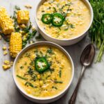 This Summer Corn Chowder is a creamy, comforting soup perfect for showcasing fresh corn at its peak. Made with sweet corn kernels, crispy bacon, tender potatoes, and a blend of milk and cream, this chowder offers a rich and satisfying flavor profile. The soup is elevated by a homemade corn stock from the reserved cobs, smoked paprika, and fresh chives for garnish. Lightly blended for creaminess while still chunky, it strikes a perfect balance between hearty and refreshing. Ideal for a cozy lunch or dinner, this gluten-free American classic celebrates the flavors of summer with wholesome ingredients.