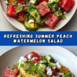 A refreshing and vibrant Summer Peach Watermelon Salad combining sweet cubed watermelon, ripe peaches, tangy feta cheese, fresh mint, and a zesty dressing of honey and lime juice. Perfect for a light, no-cook dish that celebrates summer flavors.