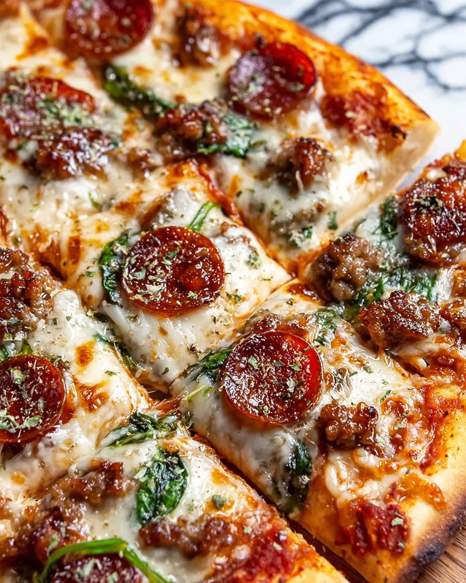 Classic toppings like pepperoni, sausage, mushrooms, and bell peppers complement the sourdough flavor perfectly. That said, feel free to get creative—just keep toppings balanced so the thin crust doesn’t get overwhelmed or soggy.