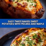 Top these twice baked sweet potatoes with a sprinkle of fresh chopped parsley or a little drizzle of extra maple syrup for a touch of pure indulgence. For a playful twist, mini marshmallows lightly toasted on top can transform this dish into a dessert-like delight that guests will rave about.
