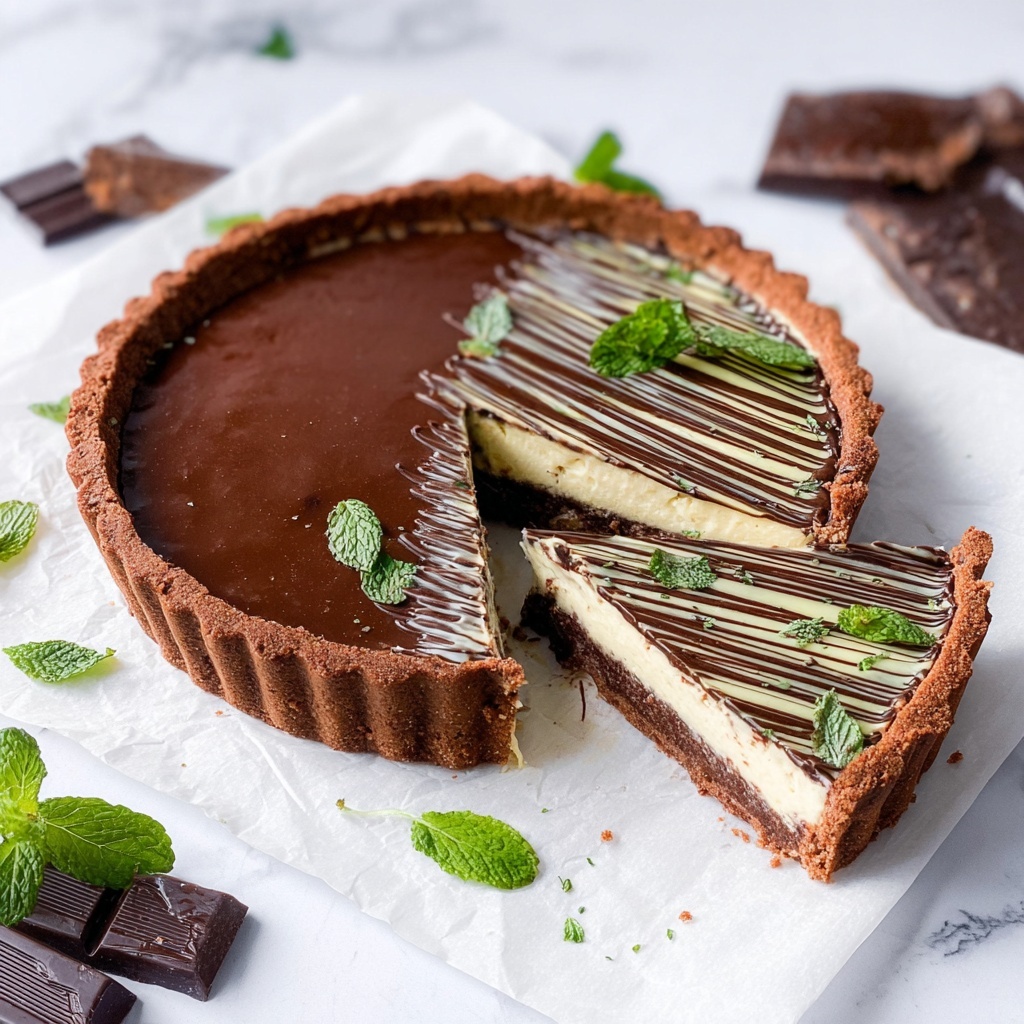 Serve individual slices on elegant dessert plates with a drizzle of mint-infused chocolate sauce or a sprinkle of crushed toasted nuts for added texture. For parties, present mini versions in tartlet tins or as layered parfaits with crumbed crust and ganache for a fun twist on this Vegan Mint Chocolate Tart Recipe.
